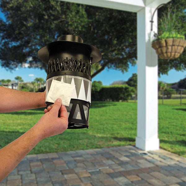Lures and catches mosquitoes, flies, asian beetles, wasps, hornets, yellow jackets, moths, stink bugs, and other flying insects