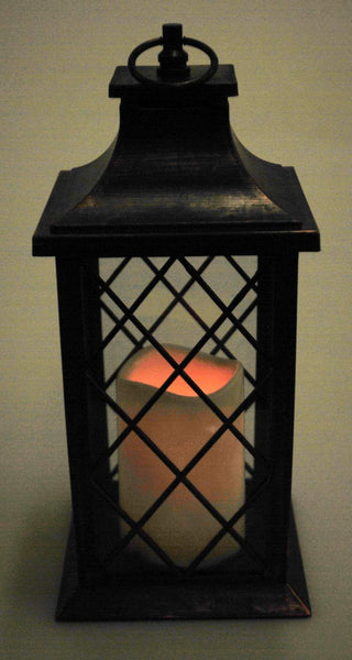 This decorative lantern from Celebrate the Season can be used to decorate your home, as the perfect wedding centerpiece, or as a beautiful gift. This lantern can be used as a table cenerpiece but it also features a ring to hang it on your patio, porch or fence. The LED candle flickers to look just like a real candle and features a 5 hour timer to conserve your batteries. Requires 3 "AAA" batteries (not included). The lantern is made from lightweight plastic with an elegant finish.