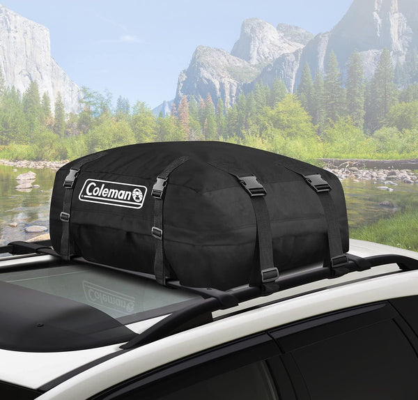 Coleman a trusted name in automotive supplies & accessories presents our exclusive Universal Water Resistant Rooftop Cargo Carrier for Cars, Trucks, SUV’s and Vans. Constructed of soft yet heavy duty weather-proof materials our roof rack luggage bag is the perfect way to maximize your Car, Truck, SUV, or Van's interior space while allowing you to pack everything you need for that special road trip, vacation or getaway. It’s a great addition to your automobile for camping trips or to simply store your stinky sporting equipment. The water resistant material will protect your belongings from the elements while its heady duty cargo straps provide a secure and tight fit, even if you don’t have a roof rack. The non-slip roof rack bag comes with a one (1) year limited warranty.