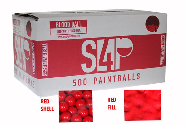 • 1 Box of 500 .68 Caliber Shop4Paintball Blood Balls (Red Shell / Red Fill)