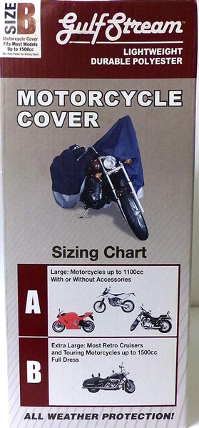 Durable Model B X-Large Motorcycle Cover with a handy storage bag. The cover is water resistant and breathable to ensure excellent protection for your prized bike. A heat resistant lower panel is included as an extra bonus.