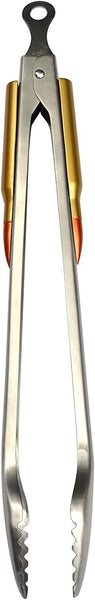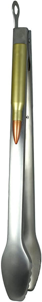 Ready, Aim, Grill! These stainless steel tongs are the most unique barbecue tool you have ever seen. A replica 50 caliber bullet is embedded into each handle while a unique front end design provides secure grip on a variety of food. Handle locks for compact storage. The perfect addition to any BBQ, these tongs are a must-have for summer cook outs, tailgate parties, and barbecues at the range. Makes a great groomsmen or Father’s Day gift for for the sportsman, soldier, or hunter in your life. Heavy Duty Stainless Steel. Dishwasher Safe