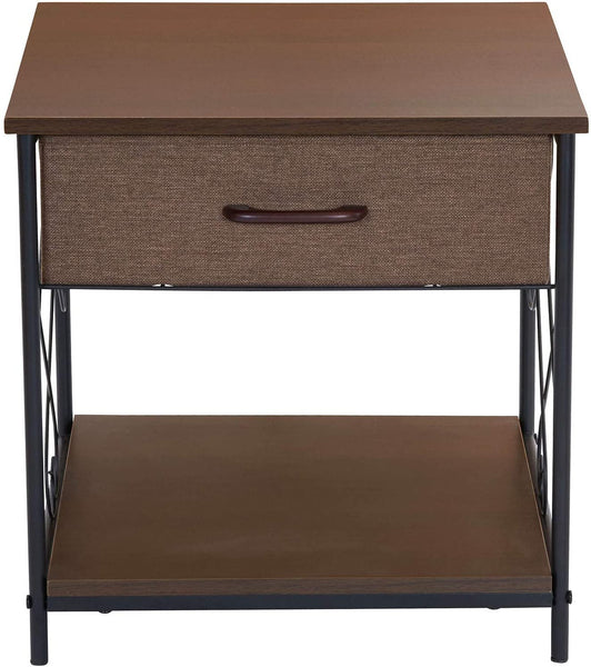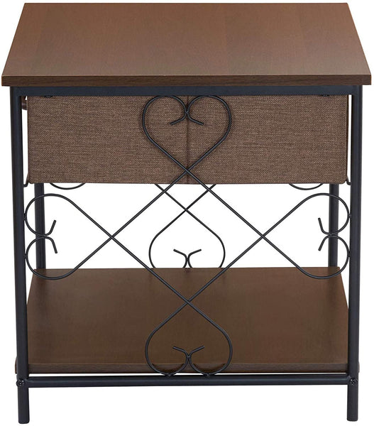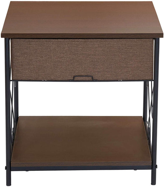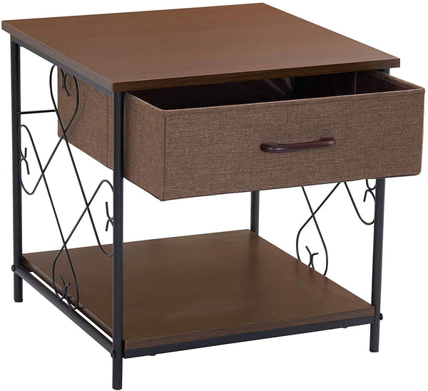 Household Essentials Walnut and Black 8047-1 End Table with Drawer Metal, 20" L x 20" W x 20" H