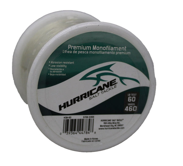 Introducing the Hurricane Salt Tackle HCM-60 Premium Monofilament Fishing Line, the ultimate line for increased durability and strength. Crafted from the highest quality materials, this monofilament fishing line is built to last and offers superior reliability and performance. This fishing line is perfect for any angler, whether they’re an experienced fisherman or just starting out. With a 60 Pound Test and a 460 yard spool, the HCM-60 Line delivers maximum strength and stability so you can cast further and catch more. Plus, it is designed for abrasion resistance and has a low visibility to attract more fish. Step up your fishing game with the Hurricane Salt Tackle HCM-60 Premium Monofilament Fishing Line - the perfect choice to maximize your catch.