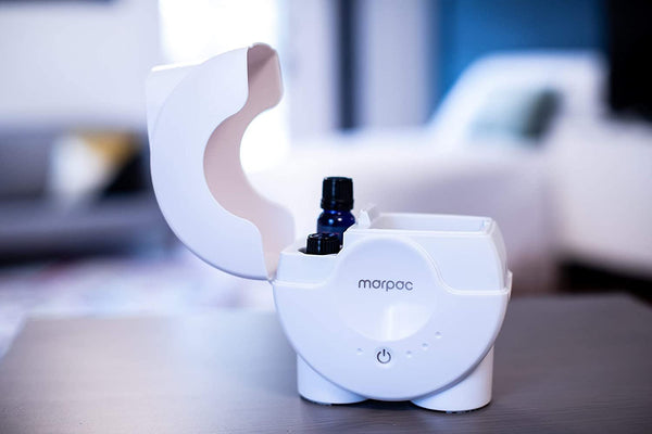 Your best snooze, starts with your schnoz. Create the perfect sleep environment with the Yogasleep Purest scent machine. Fill the bedroom with scents that signal to the nose-to-brain super highway that it's time to sleep. It becomes the start of a healthy bedtime routine. The Purest has a unique hinged lid that makes adding water and scents easy and mess-free. And there's space to store two scents built right inside the cover. Choose one of two scent intensity levels and 1-hour, 2-hour or continuous use timer options. The unit is controlled with quiet touch controls. Use Yogasleep's unique scents, designed specifically for sleep, or use any essential oil scent. Yogasleep scents include "That's Good Sheets", "Chill Pill(ow)" and "Up to Nose Good" and are sold separately.
