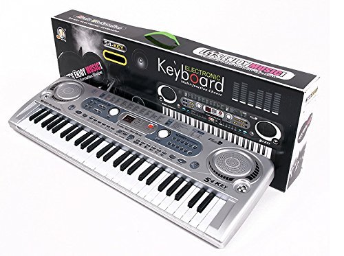 Let's Enjoy Music! This 54 key keyboard from MQ is loaded with fun! This musical information system would make the perfect gift for any child 3-12yrs old. This keyboard comes with many features including 10 Demo Songs, 5 Percussion, 5 Animal Noises + More!